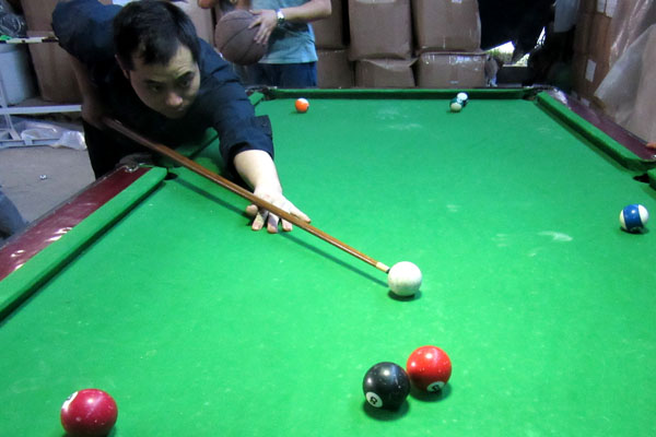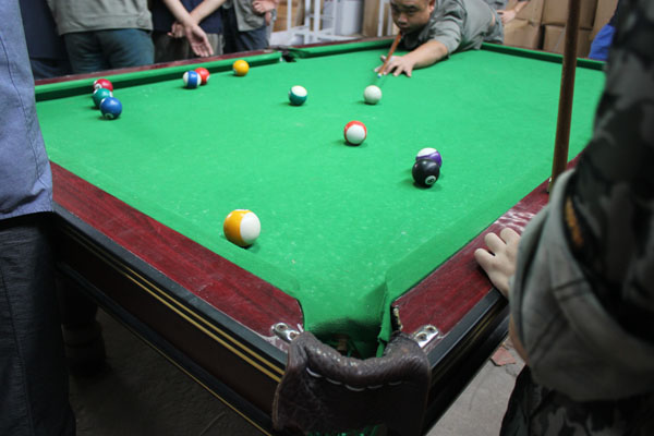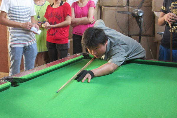 此次臺(tái)球比賽共有21人參加,圖為行星球磨機(jī)制造組小焦